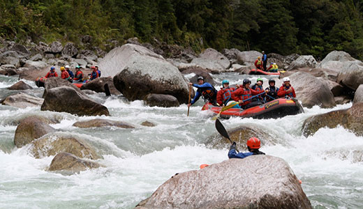 Day 3 starts off easy and gradually gets harder as we enter the granite rock walls of the Karamea Gorge. The river is now at full volume, powerful and chaotic as it plummets down the steep boulder strewn riverbed, the raft buckling and twisting in the foaming roller-coaster ride. Finally as the river eases, its power spent, we exit the gorge and drift to the take-out and then head into Karamea for a well-deserved cold beer.